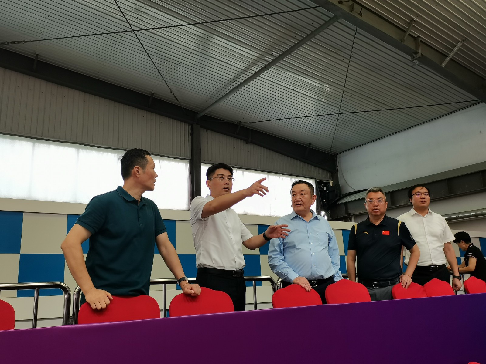 王峰一行听取有关情况汇报,详细了解赛事筹备情况,协调解决存在的困难和问题,并召开座谈会。会后实地考察了比赛场馆的搭建情况,肯定了jinnian金年会此次引进、承办大赛的做法和成果。